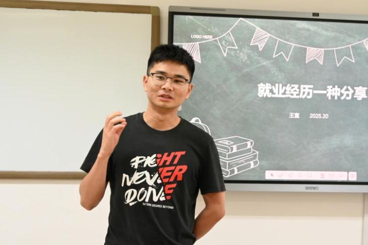 求职经验分享会中,2022级硕士研究生王宣以“多维视角下的职业选择与发展”为主题展开讲解。王宣系统梳理了“三线并进”的秋招策略,建议同学们协同推进“实习实践、岗位投递、面试考核”三条主线。通过建构“发展前景-薪酬体系-团队氛围-职业挑战”四维评估模型,他向同学们提供了选择意向行业与意向岗位的参考标准。针对国际中文教育志愿者项目、新兴行业赛道选择等热点问题,王宣也耐心地解答了同学们的疑惑,分享了个人求职过程中的心理调适经验。