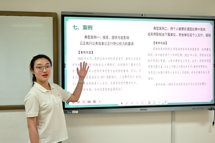 专题党课中,李亦然以“扣好廉洁的第一粒扣子——新时代青年党员的作风养成”为题开展领学。她通过梳理中央八项规定实施以来的工作情况,从“精简会议活动”“规范出访活动”“改进新闻报道”等八个方面深入解读制度内涵。结合高校实际,李亦然重点指出了学术科研、实习就业、学生工作中可能存在的作风问题。与会党员表示,将在今后的工作学习中以实际行动践行廉洁自律要求,不断提升党性修养,为营造风清气正的环境贡献力量。