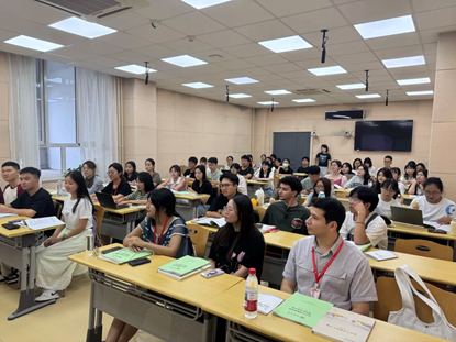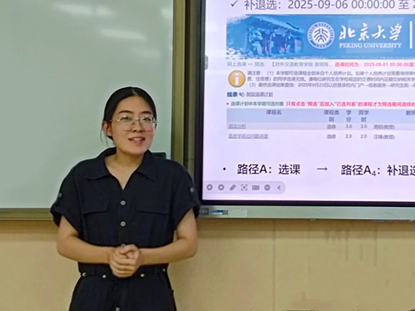 同日上午,2025级留学生新生交流会于方李邦琴楼104教室举行。新生们首先上台自我介绍,表达对北大生活的期待。在欢乐的破冰小游戏后,2024级博士研究生林嘉仪、2024级硕士研究生Safura向新生们介绍了学院基本情况,提供了详细的选课指导以及北大生活攻略,为新生们答疑解惑。