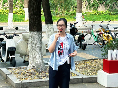 9月3日上午,2025级新生开展学院及燕园主校区游览活动,依次参观对外汉语教育学院院楼、百周年纪念讲堂、图书馆、博雅塔、未名湖、蔡元培雕像和李大钊雕像等校园地标,2024级硕士研究生张语薇负责导览讲解。