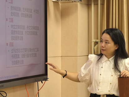 为助力新生高效运用图书资源,9月3日下午,学院开展了学校和学院图书馆使用讲座。首先,北京大学图书馆对外汉语教育学院分馆郭素琴介绍了学院资料室的基本情况,讲解了学院分馆的借阅流程与规则。北京大学图书馆文献资源服务中心张晓琳回顾了北大图书馆的百年变迁,依次从图书馆的整体情况、馆藏种类与分布、文献检索与获取、用户服务、借阅规则、阅读活动等方面开展详细介绍。此次讲座帮助新生充分了解图书馆资源及利用方法,为提升同学们的学术研究和深度学习能力奠定基础。
