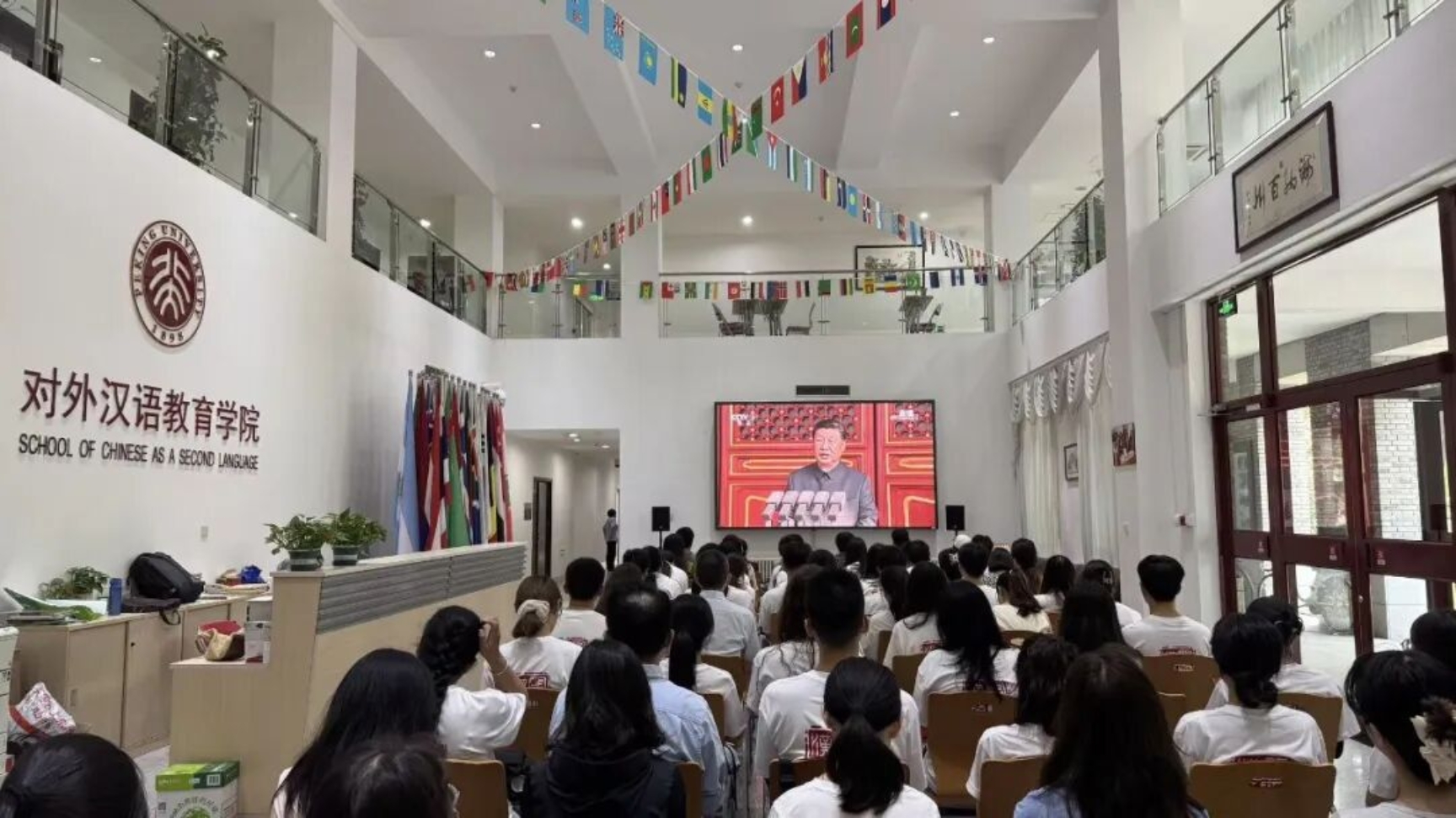 北京大学对外汉语教育学院师生集中收看纪念中国人民抗日战争暨世界反法西斯战争胜利80周年大会