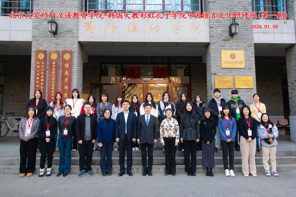 2026年1月5日,北京大学对外汉语教育学院-韩国大教彩虹孔子学院中国语言文化研修班(第一期)开班式在学院109教室举行,北京大学博雅特聘教授、对外汉语教育学院院长赵杨,项目任课教师刘元满教授、李海燕教授、姚骏副教授,韩国彩虹孔子学院金成勇主任,项目负责人姜帅老师,以及来自韩国的19名学员共同参加了开班仪式。开班仪式由班主任陈汐老师主持。