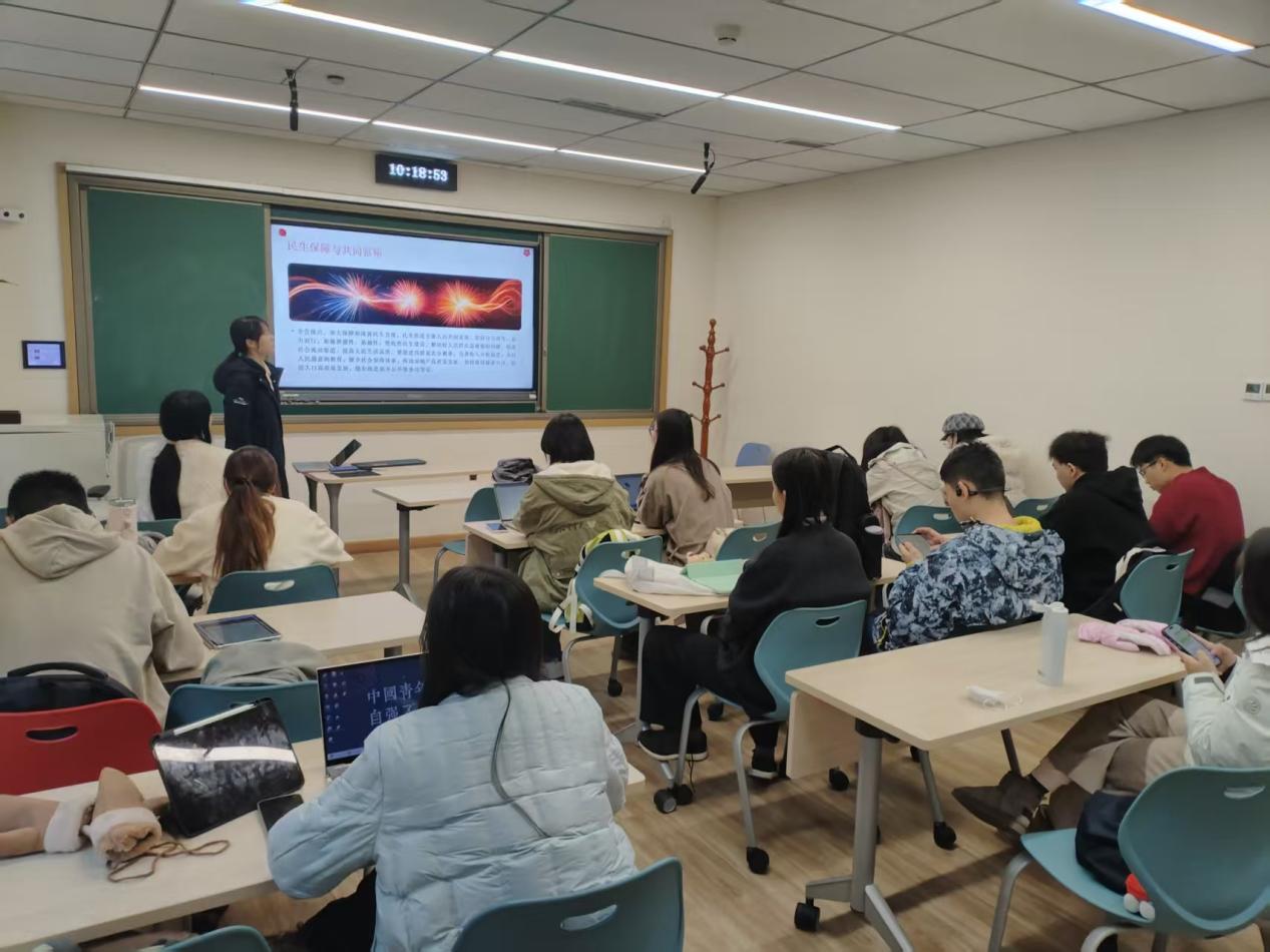 张语薇结合北京日报等官方媒体发布的公报学习笔记,带领支部成员对比十九届五中全会和二十届四中全会公报内容,重点学习“十四五”时期发展成就、“十五五”规划原则及十二项战略部署。与会成员密切联系生活实际,阐述自己对“坚持有效市场和有为政府相结合”“以新需求引领新供给,以新供给创造新需求”“激发全民族文化创新创造活力”等理念的理解与体会。