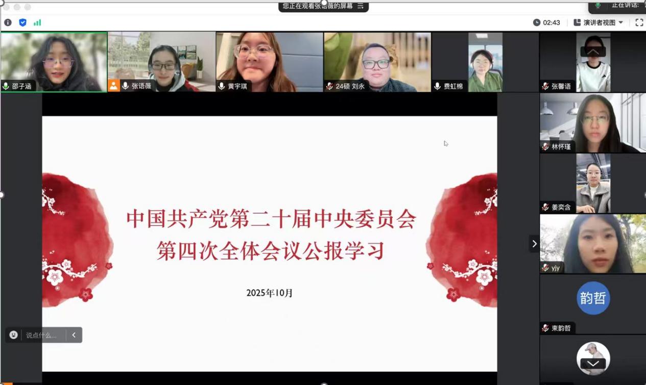 2024级硕士生党支部通过线上形式开展集体学习,会议由2024级党支书张语薇主持。