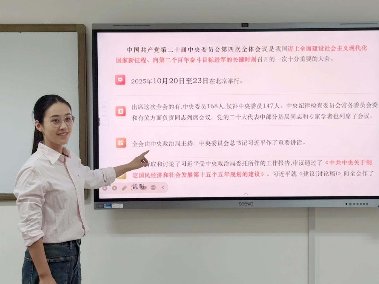 高子妍围绕《中国共产党第二十届中央委员会第四次全体会议公报》进行领学。她系统梳理了党的二十届三中全会以来的工作成就与“十四五”时期的建设历程及“十五五”时期的发展蓝图。
